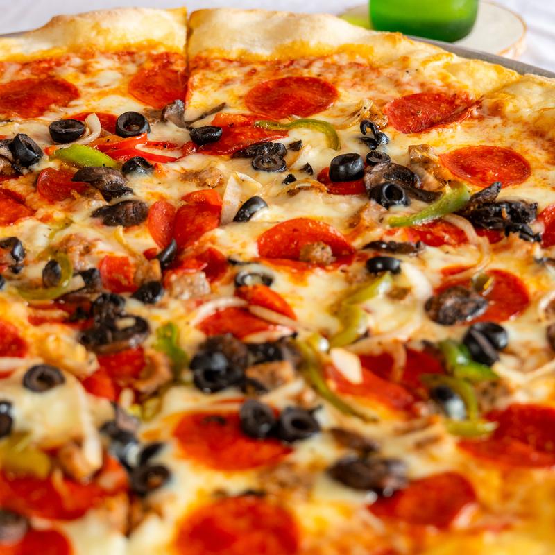 Pepperoni, sausage, olive, mushroom, peppers & onion.