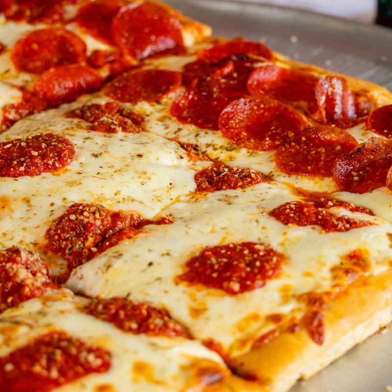 Crispy on the outside, chewy on the inside. Our Sicilian is topped with our pizza sauce and mozzarella.